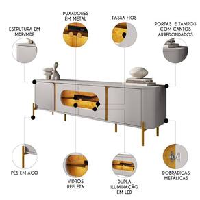 Um dos principais destaques Rack Para é a dupla iluminação em LED, que proporciona um efeito visual elegante e moderno, juntamente com os vidros reflecta, dá um toque a mais de sofisticação, criando uma atmosfera única e iluminada valorizando sua Sala de Estar.