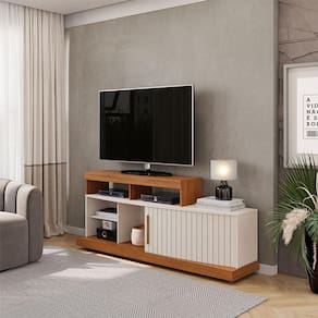 Rack Bancada para Sala Ambiente Scala Freijó Off White – DJ Móveis