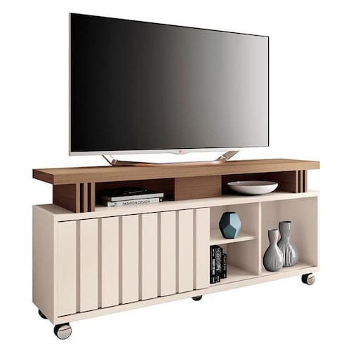 Rack Bancada para Sala Rivera Off White Castanho HB Móveis