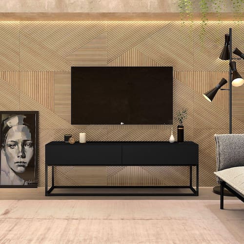 Rack Eros Estilo IndustrialNossa empresa desenvolveu este móvel para você que gosta de deixar o seu ambiente mais bonito e elegante, valorizando ainda mais a sua decoração.Nosso novo rack pertence a linha Eros, que é um sucesso de vendas. Ele tem duas gavetas com corrediças telescópicas, para que possa organizar os seus objetos de modo prático.Os pés são de ferro (metalon) com espessura de 20x20mm com um design moderno no estilo industrial, muito mais resistentes pintados com pintura eletrostática.Medidas:Altura total: 50 cm Altura dos Pés: 31 cmAltura do Móvel: 19 cmProfundidade: 37 cmComprimento: 140 cmSuporta de 30 à 32 kgPolegadas indicadas para TV: 50”Medidas das Gavetas:Largura: 62 cmAltura: 9 cmProfundidade: 30 cm- Produto vai desmontado, manual de instruções.- Objetos não acompanham o produto.- A montagem e de responsabilidade do comprador.Palavras chaves;TVRack para TVHack para TVQuartoSalaSala de EstarPés em metalSuíteLinha altaEstilo IndustrialAmbienteRack para somGavetasRack com gavetaModernoDecoraçãoResidênciaLinha AltaQualidadePés de FerroBase em FerroBase de açoBase de MetalBase de Ferro Preta