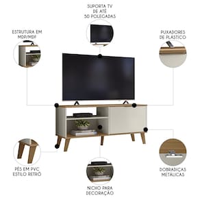 Rack Bancada Para TV 50 Pol 120cm Roby Off/Nature Z49 - Mpozenato