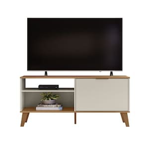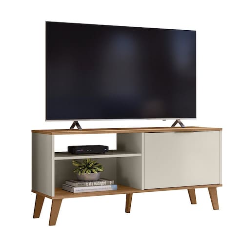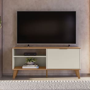 Com design compacto, esse rack para sala conta ótima repartição entre porta, prateleira e nichos, ou seja, possui espaço para acomodar aparelhos eletrônicos e objetos decorativos, além de ser ideal para apoiar TVs de até 50 polegadas. Além disso, esse rack para tv se destaca pela versatilidade, já que harmoniza com qualquer estilo de decoração, sem falar que se adequa facilmente em sala de estar pequena, sem comprometer a funcionalidade.