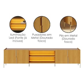 O Rack Bancada Maggiore renova sua sala com sofisticação e elegância. Produzido em MDP 25/15 mm com acabamento em pintura UV. Conta portas com dobradiças metálicas, puxadores em metal, iluminação sutil embutida no nicho central (fita LED com fonte já inclusa), prateleira exposta para aparelhos ou decorações, amplo espaço interno e pés também em metal, que garantem estabilidade. Ideal para TVs de até 75 polegadas. TELEVISÃO E DEMAIS DECORAÇÕES NÃO INCLUSO. Produto será entregue em 2 volumes.