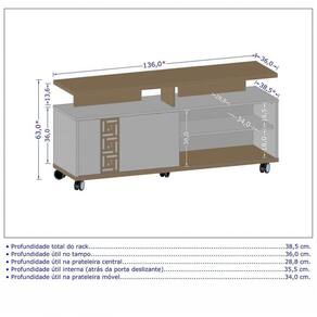 Espaço para TV: (Largura x Profundidade) 136 x 36 cm.