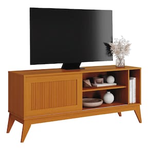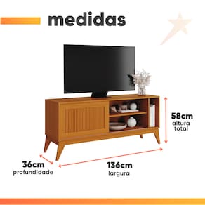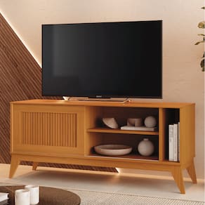 Rack Bancada para TV até 55 Polegadas 1,36m Ripado Impressão 3D 1 Porta Cedro Aruba EDN - Marrom