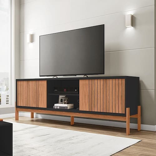A Bancada Tiger irá completar seu ambiente, possui elegância além de um design único e exclusivo. Suporta Televisores de até 72 Polegadas além de possuir 2 portas de correr um com amplo espaço de armazenamento. Feito em MDP e HDF possui maior durabilidade e resistência, transmitindo maior segurança ao móvel.