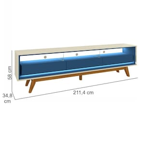 Estrutura: 100% MDFAcabamento: Pintura U.VGaveta: Sim, 03 gavetas com bordas chanfradas e laqueadas, design flutuante e com corrediças telescópicasLuz de LED: Sim, Luz quente com difusor na parte superior e inferior do nichoNicho: Sim, com divisão em vidro de 8 mmPés: Sim, incluso no produto em madeira maciça com detalhes abauladosSuporta TV: Ideal para TV de ate 85”Dimensões do produto montado