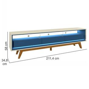 Estrutura: 100% MDFAcabamento: Pintura U.VGaveta: Sim, 03 gavetas com bordas chanfradas e laqueadas, design flutuante e com corrediças telescópicasLuz de LED: Sim, Luz quente com difusor na parte superior e inferior do nichoNicho: Sim, com divisão em vidro de 8 mmPés: Sim, incluso no produto em madeira maciça com detalhes abauladosSuporta TV: Ideal para TV de ate 85”Dimensões do produto montado
