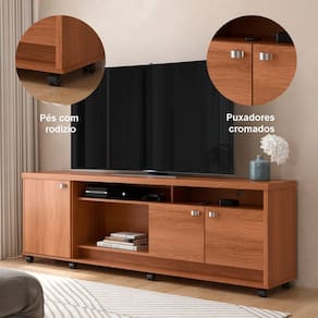 Suas três portas oferecem armazenamento inteligente, permitindo organizar eletrônicos, livros, jogos e objetos de decoração de forma prática e discreta. Além disso, sua estrutura robusta garante durabilidade e estabilidade, combinando com diferentes estilos de decoração.