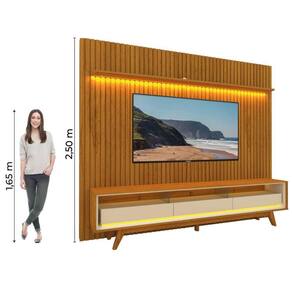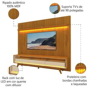 Rack Bancada Requinte Com Painel Ripado Para Tv Até 90 Polegadas Led Nobre Madeirado/off White Gelius
