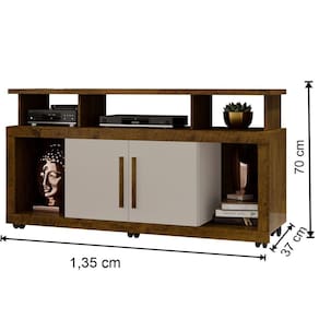 Com comprimento de 135 cm o Rack bancada é espaçoso o suficiente para acomodar seus itens e eletrônicos, enquanto mantém um perfil compacto para se adaptar a diversos es Produto Montado: Sim Acabamento: Impressão Acabamento da Porta: Pintura Acabamento da Prateleira: Pintura Ambiente Principal: Sala de Estar codigo_ean: 7900288025708 Complexidade da Montagem: Média: pode ser montado por mais de uma pessoa e/ou necessite de maior conhecimento para montagem Cor: Canela/Off White Cor da Porta: Off White Cor do Produto: Canela/Off White Cor Flex: nao Cor Interna: Canela Escala de Brilho: Fosco Escala de Brilho da Porta: Brilhante Escala de Brilho da Prateleira: Semi-Brilho Estilo do Pé: Rodízio Ideal para TVs até (Polegadas): 55 Itens Inclusos: 1 Rack + Manual de Montagem Manual de Montagem e Instalação: https://product-hub-prd.madeiramadeira.com.br/970395/documents/2f3193dd-ee73-41aa-be4b-7381d2b589e52557977615417320441169463.pdf Marca: Móveis Bosi Material da Porta: MDP Material da Prateleira: MDP Material do Puxador da Porta: PVC Material dos Pés: PVC Material Principal: MDP Modelo de Porta: Porta Lisa Necessita Montagem: Sim Origem do Produto: Nacional Peso: 32 kg Peso Máximo por Prateleira: 6 kg Possui Adega: Não Possui Espelho: Não Possui iluminação: Não Possui Pés: 06 Possui Prateleiras: Sim Possui Vidro: Não Recomendações de Uso, Manutenção e Limpeza: Limpar com Pano Seco. Rodízio com Trava: Não Sapatas Niveladoras: Não Sistema de Montagem: Manual Tipo de Porta: Bater Tipo de Puxador da Porta: Externo Tipo de Rack: Rack Baixo