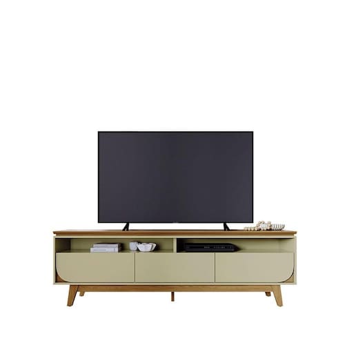 Te aprensento esse Móvel Rack Bancada Selene que vem com trés gavetas com corrediças telescópicas, gavetas laterais com detalhes curvo, com tampo da Tv Suspenso em 25 mm com bordas chanfrada, pés usinados, painéis em MDP de 15 e 25mm, produzida na Madetec, é aquela escolha perfeita para sua sala de estar não perca e adquire.