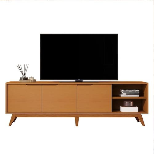 Ideal para TVs de até 75, possui 3 portas com dobradiças metálicas, nichos amplos e prateleira para eletrônicos ou decoração.