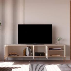 Com design moderno em MDF 15mm e pés de metal, suporta TVs de até 75.