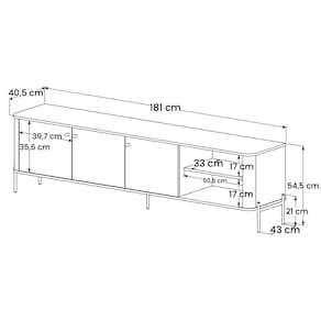 Tamanho do espaço para TV: 183 cm x 42 cm;