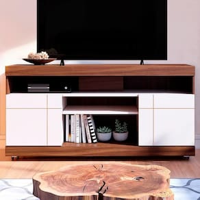 Rack Bancada Yara - detalhes frisados, linhas retas e muito estilo para sua sala!