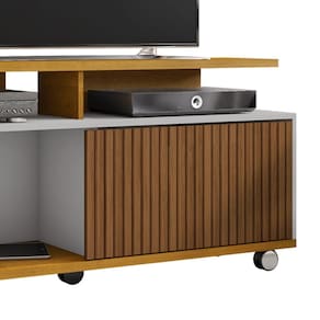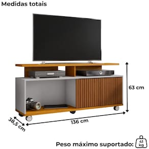 Rack Bancada Topázio, linhas modernas que se adaptam a diferentes estilos de decoração. Estrutura em MDP (15/25mm) com acabamento em pintura UV texturizada. Possui porta de correr, ripados decorativos (baixo relevo), nichos abertos e rodízios plásticos (sendo 2 com trava). Suporta TV's de até 52 polegadas. Entregue em 1 volume.