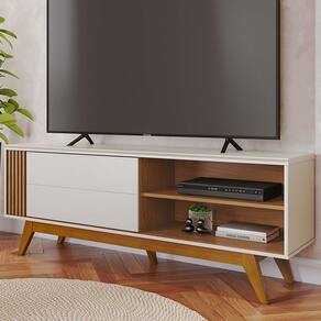 Design moderno e detalhes retrô, Rack Bancada Otawa é ideal para TVs de até 65 polegadas com segurança. Possui estrutura em MDP/MDF (12 e 15 mm) com acabamento em pintura UV texturizada (fosco/brilho). O tampo conta com detalhe chanfrado, porta de correr com ripado decorativo (alto relevo), prateleira funcional e passa fios embutido. Os pés são em madeira maciça, no estilo retrô que valoriza qualquer ambiente. Este produto chegará em sua casa separado em 1 volume.