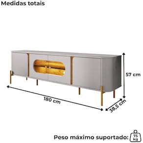 Cor: Multicolorido | Tonalidade: Multicolorido | Altura: 57 cm | Largura: 180 cm | Produto: Rack | Tamanho: Médio | Marca: Bechara | Profundidade: 38,5 cm | Requer montagem: Sim | Modelo: Juquehy | Quantidade de caixas de embalagem: 1 | Formato do móvel: Rack | Inclui manual de montagem: Sim Cor: Off White Cinamomo