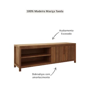 Características: Estrutura em Madeira Maciça de Pinus Taeda de Reflorestamento Pintura semi-brilho 02 Portas com dobradiças com amortecimento Puxadores cava Acabamento escovado Pés retos em madeira maciça Peso máximo suportado pela Prateleira: 10kg distribuídos Peso máximo suportado pelo Tampo: 30kg distribuídos Ideal para TV até 80 polegadas *NÃO ACOMPANHA TV*