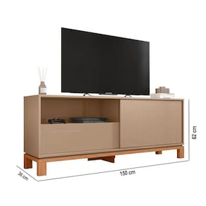 Rack Bancada Tv Para Sala De Estar 150cm Visari C01 - D'rossi Cor Marrom/freijó Eleve o estilo e a praticidade da sua sala de estar com o Rack Bancada TV 150cm Visari. Ideal para ambientes compactos, ele acomoda TVs de até 55 polegadas e se destaca pelo design contemporâneo aliado à funcionalidade. Produzido em MDP de 15mm, oferece resistência e durabilidade para o uso diário. Entre a gaveta e o nicho aberto, o espaço vazado garante ventilação eficiente para eletrônicos e facilita o manuseio de cabos e dispositivos. O rack conta com 1 prateleira funcional, 1 gaveta com corrediças telescópicas e 1 porta deslizante com detalhe microripado, que trazem praticidade e elegância ao conjunto. Os pés cavalete de madeira com base elevada conferem leveza ao visual, além de facilitar a limpeza e proporcionar maior estabilidade. Com soluções inteligentes para o dia a dia, o Rack Visari valoriza seu espaço com organização e estilo. Dimensões da Produto: Altura: 62 cm Largura: 150 cm Profundidade: 36 cm Peso: 53 kg Especificações do Produto: Material da Estrutura: MDP 15mm Acabamento: Pintura UV Escala de Brilho: Brilhante/Fosco Peso Suportado: 30 kg distribuídos Suporta TV de até: 55 Polegadas Possui Prateleiras: Sim Quantidades de Prateleiras: 1 Prateleira Possui Portas: Sim Quantidade de Portas: 1 Porta Tipo de Portas: Deslizante Possui Gavetas: Sim Quantidade de Gavetas: 1 Gaveta Tipo de Corrediças: Telescópicas Possui Puxador: Não Possui Nichos: Sim Quantidade de Nichos: 1 Nicho Possui Pés: Sim Tipo de Pés: Pés cavalete com base elevada Material dos Pés: Madeira Possui LED: Não Possui Vidro: Não Sapatas Niveladoras: Não Diferenciais: Design moderno; Porta com detalhe microripado. Sistema de Montagem: Cavilhas/Parafusos/Minifix Manual de Montagem: Sim Complexidade da Montagem: Média Montagem: Recomendamos que seja feita por um Garantia: 90 dias contra de fabricação Instruções de Limpeza: Utilizar um pano limpo e levemente úmido Quantidade de Volumes: 1 Caixa Medida das Embalagens: Caixa 1: 156,7x44,7x9cm : É feita somente até o térreo ou portaria. Confira sempre as medidas das embalagens para assegurar que o produto passe por portas e escadas do .