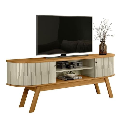 Descubra o Rack Bancada Valência, a escolha ideal para quem valoriza inovação e praticidade na decoração. Suas portas íveis em MDF oferecem uma combinação de funcionalidade e sofisticação, enquanto a exclusiva porta curva da Madetec adiciona um toque de autenticidade ao móvel. Com detalhes curvos no tampo e na base, pés palito, e puxadores em bronze, o design moderno do Rack Bancada Valência se destaca. Fabricado com chapas de MDP de 15 e 25mm, ele é durável e elegante. Com 183cm de largura, este rack otimiza o espaço da sua sala de estar e é perfeito para até 75.