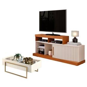 Rack Bancada Valle com Mesa de Centro Petri Freijó Off White DJ Móveis