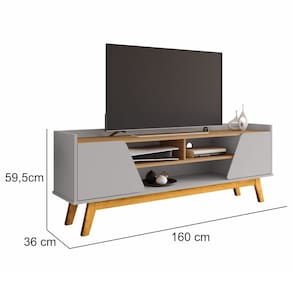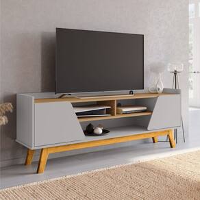 Estrutura: MDF/MDP com espessura de 15 mmAcabamento: Pintura U.V., com escala de brilho foscoPorta: Sim, 02 portas de abrir em MDF chanfradas com dobradiças metálicas com sistema soft-close eNicho: Sim, 03 nichos para melhor acomodação dos seus aparelhos eletrônicosPrateleira: Sim, 01 prateleiraPés: Sim, 04 pés de madeira Maciça (Pinus)Peso: Suportado Suporta o peso de 55 Kilos distribuídosSuporta TV: Ideal para TV de até 65 polegadas, espaço para TV, largura 156,6 cm e profundidade 34 cmDiferencial: Portas em MDF chanfradas; Dobradiças metálicas e sistema SOFT CLOSE; Pés de madeira MaciçaDimensões do produto montado