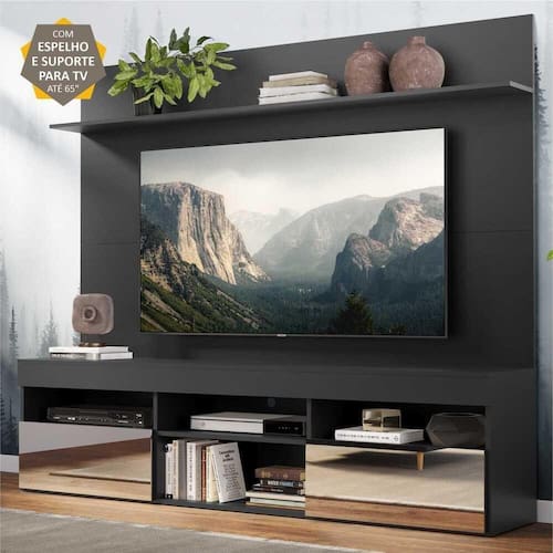 Conteúdo da Embalagem: 1 (um) Rack com Painel para TV e Prateleira 1 (um) Kit com Suporte TV 1 (um) Kit com 2 (dois) Espelhos