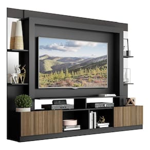 Rack c/ Painel e Suporte TV 65" Prateleiras c/ Espelho Oslo Multimóveis Preto/Madeirado - Preto