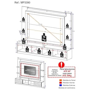 *Devido as variações de tamanho dos televisores no mercado, sugerimos que verifique as medidas da sua TV e compare com o painel antes de efetuar a compra.