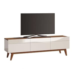 Rack Classic 3g Off White Com Freijó - Imcal Móveis Para complementar o charme e a sofisticação do seu ambiente, apresentamos o Rack Classic 3G - Imcal Móveis! A linha Classic foi elaborada para oferecer conforto, comodidade e beleza para toda a família. Produzido em MDP e MDF que oferecem resistência e durabilidade ao móvel, esta peça é perfeita para organizar e decorar o seu ambiente, com três gavetas de corrediças telescópicas, possui espaço para acomodar itens pessoais, objetos de decoração e aparelhos eletrônicos, mantendo tudo muito bem ões do Produto Montado:Altura: 52 cmLargura: 180,2 cmProfundidade: 40,3 cmObservações:- Estrutura em MDP/MDF;- Corrediças telescópicas;- Pé em madeira maciça;- Ideal para TVs de até 75 polegadas;- Pintura Ultravioleta Marca: Não Informado