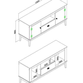 Rack - Colonial 135x66x41 cm 2 Portas 1 Gaveta Mel / Oliva - Verde