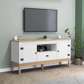 O rack para TVs de até 60 polegadas MB 1015 possui estrutura em MDP 15mm e acabamento em pintura UV. Costas 3mm. Possui 2 portas de bater com dobradiças metálicas e puxadores ponto metálicos e 1 gaveta com corrediça telescópica, puxador concha metálico e que suporta 5kg. Produto possui 4 pés em madeira maciça com altura de 20cm. Tampo em MDP 15mm. Produto suporta até 25kg. Conteúdo da embalagem: móvel, ferragens e manual de montagem. A fixação das peças e/ou acessórios é feita por parafusos, cavilhas e minifix. Para uma limpeza mais efetiva, utilizar apenas pano macio umedecido e sabão neutro. Não utilizar produtos abrasivos. Garantia de 03 meses contra defeitos de fabricação. Medidas do produto (AxLxP): 66x135x38,5cm. Peso do produto: 31,5kg. Marca: Não Informado