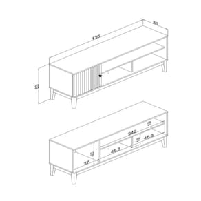 O rack para TVs de até 55 polegadas MB 1056 possui estrutura em MDP 15mm e acabamento em pintura UV. Costas 3mm. Possui 1 porta de bater com dobradiças metálicas e puxador ponto metálico e 1 prateleira que suporta 5kg. Produto possui 5 pés em madeira maciça com altura de 20cm. Tampo em MDP 15mm. Produto suporta até 25kg. Conteúdo da embalagem: móvel, ferragens e manual de montagem. A fixação das peças e/ou acessórios é feita por parafusos, cavilhas e minifix. Para uma limpeza mais efetiva, utilizar apenas pano macio umedecido e sabão neutro. Não utilizar produtos abrasivos. Garantia de 03 meses contra defeitos de fabricação. Medidas do produto (AxLxP): 66x136x36cm. Peso do produto: 23kg.