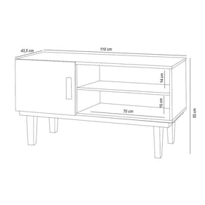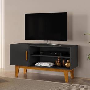 Ele comporta TVs de até 42 polegadas, além de conter 1 prateleira e 1 porta, garantindo espaço para seus objetos decorativos e aparelhos eletrônicos