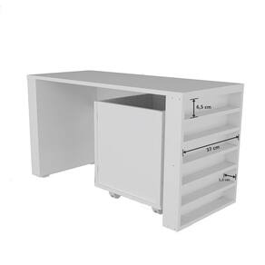 - Móvel com porta livros de um lado e porta carrinhos do outro.