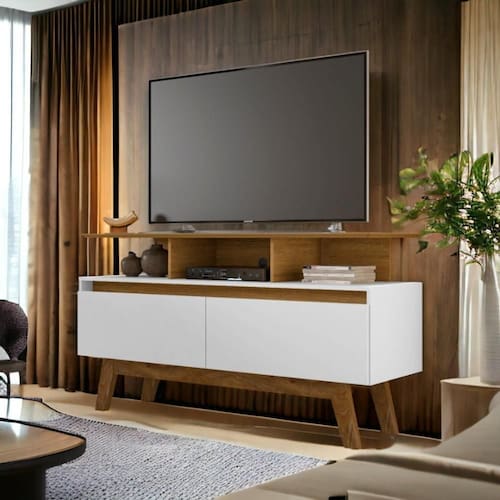 Rack com Gavetas Rubi 1,2 Cinamomo e Branco Bechara