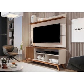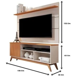 Rack Com Painel 1.36 TV Até 55 Retrô Pés Madeira Porta Nichos Prateleira