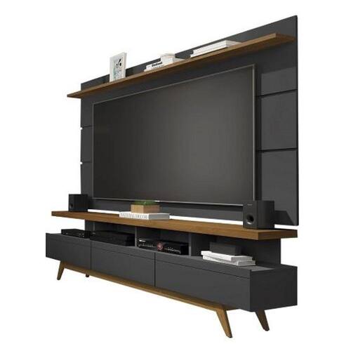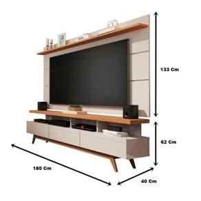 Rack Com Painel 1.80 TV Até 72 Retrô Pés Madeira Gavetas Nichos Prateleira