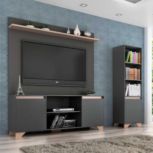 Conjunto Benevello da Quiditá Móveis, composto pelo Painel 1600, Rack 1600 e a Estante, um conjunto contemporâneo com um ligeiro aspecto retrô, inovando para beleza e conforto em seu ambiente, produzidos com painéis de MDP 15mm, viabilizando segurança.