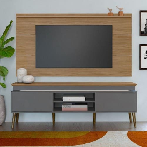 1x Painel para Tv até 60 Polegadas com Suporte Universal Slim Carvalho Largura: 180 cm Altura: 98 cm Peso: 21 kg Profundidade: 15 cm Necessita Montagem: Sim