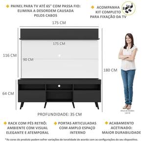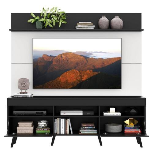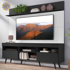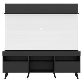 Rack com Painel e Suporte Tv 65 Madri Multimóveis Preto/branco Com Prateleira e Pés Retrô Preto