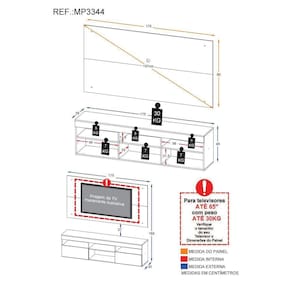Conteúdo da Embalagem: 1 (um) rack com painel para TV 1 (um) kit com suporte para TV