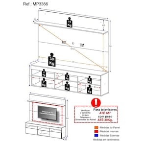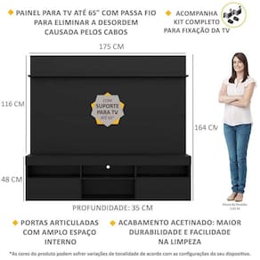 *Devido as variações de tamanho dos televisores no mercado, sugerimos que verifique as medidas da sua TV e compare com o painel antes de efetuar a compra.