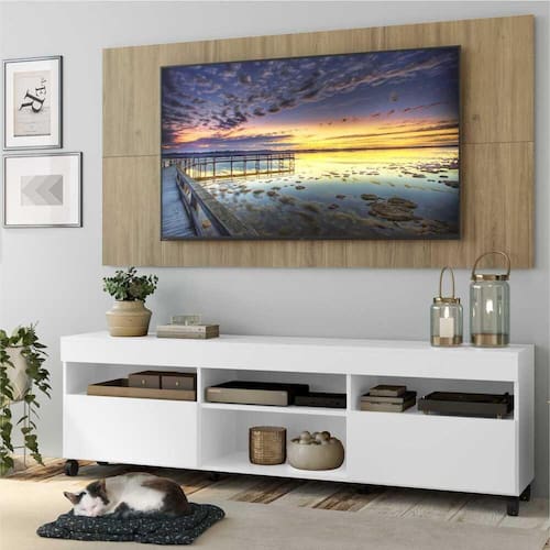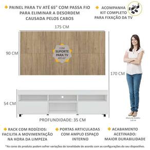 Dimensões do produto montado: Painel - Altura: 90cm | Largura: 175cm | Profundidade: 2,5cm Rack - Altura: 54cm | Largura: 175cm | Profundidade: 35cm *Devido as variações de tamanho dos televisores no mercado, sugerimos que verifique as medidas da sua TV e compare com o painel antes de efetuar a compra. *Você pode consultar as medidas internas na imagem técnica do produto.