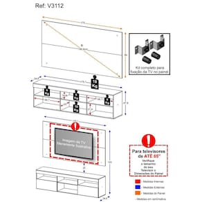 Devido as variações de tamanho dos televisores no mercado, sugerimos que verifique as medidas da sua TV e compare com o painel antes de efetuar a compra.
