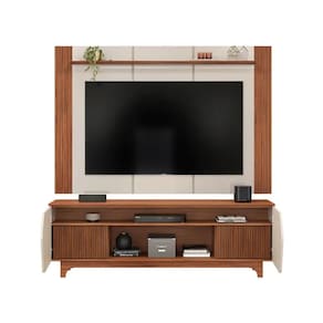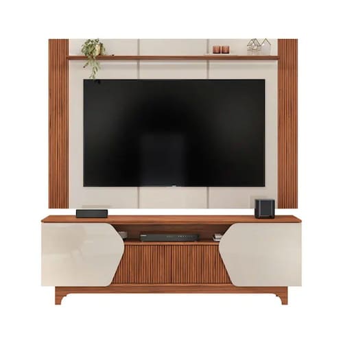 Design Produzida em MDP e MDF, o rack conta com 2 portas de giro e 2 portas centrais de correr com detalhe ripado canelado, além de nicho e passa-fios que ajudam você a completar a decoração e ainda manter tudo no lugar. Agora é só instalar a TV, conectar os aparelhos eletrônicos e aproveitar!