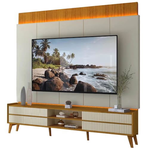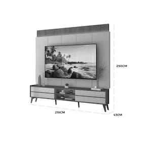 Rack com Painel Magnifico para TV até 75 Polegadas com LED e 4 Gavetas Gelius O Rack com Painel Magnifico para TV até 75 Polegadas com LED e 4 Gavetas Gelius é a peça central perfeita para sua sala de estar, combinando elegância, funcionalidade e alta tecnologia. Projetado para acomodar televisores de até 75 polegadas, ele garante um visual moderno e sofisticado para seu ambiente. A imponência do painel complementa o rack, criando uma composição harmoniosa que valoriza a sua TV e todo o espaço, transformando a experiência de assistir aos seus programas favoritos em algo grandioso. Este móvel foi cuidadosamente desenvolvido para atender às necessidades da vida contemporânea, oferecendo soluções inteligentes para organização e entretenimento. Com seu design arrojado e acabamento impecável, o conjunto se destaca como um item de luxo, ideal para quem busca requinte e praticidade. A Gelius, reconhecida pela qualidade de seus produtos, mais uma vez surpreende com um móvel que une beleza e durabilidade, assegurando um investimento que vale a pena para o seu lar.\nMEDIDAS\nAltura 250 cm\nLargura 218 cm\nProfundidade 43 cm\nCARACTERÍSTICAS\nFabricante Gelius\nModelo Rack com Painel Magnifico\nGarantia 3 meses\nTipo de produto Rack com Painel para TV\nAmbiente Sala de Estar\nEstrutura 100% MDF\nQuantidade de Gavetas 04, com frente ripada e tecnologia "One Touch" (abertura com um simples toque)\nTipo de Corrediça Telescópica\nIdeal para TVs de até 75 Polegadas\nPossui Iluminação LED Sim, LED em tom quente com tecnologia "Touch Sensitive" (acende e apaga com um toque no painel)\nQuantidade de Pés 06\nNecessita Montagem Sim\nAcompanha Manual de Instalação Sim\nINFORMAÇÕES IMPORTANTES\nObjetos decorativos que porventura apareçam na foto, não acompanham o produto. Não nos responsabilizamos pela montagem/instalação dos produtos.\nMontagens, desmontagens e instalações são responsabilidades do cliente. Indicamos que contrate uma empresa de montagem ou um montador de sua confiança.\nAlém disso, favor verificar se os pés e acessórios estão dentro do forro inferior do produto. Em suma, todas as informações divulgadas sobre o produto são de responsabilidade do Fabricante.\nAs cores do produto podem variar de acordo com o seu monitor, a iluminação do ambiente em que você está e até mesmo a sua percepção visual. Além da cor, pequenos detalhes e acabamentos podem não ficar evidentes na foto, por isso as imagens são meramente ilustrativas.