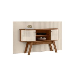Fabricada com estrutura em MDP e MDF de 12, 15 e 25mm, ela apresenta um revestimento em pintura UV de alta qualidade, que proporciona durabilidade e um acabamento refinado. Suas dimensões incluem um painel de 1,790 x 2,445 x 0,185m e uma bancada de 1,360 x 0,680 x 0,355m, ambos projetados para suportar TVs de até 65 polegadas, com entradas específicas de 1,790 x 1,200mm no painel e 1,360 x 0,355m na bancada. O painel possui um elegante frisado em MDF com design em baixo relevo, enquanto a bancada conta com tampo e base com detalhes curvos que destacam a modernidade do conjunto. O produto inclui duas portas flexíveis em MDF, duas prateleiras para organização adicional, puxadores em poliestireno e pés retrô que agregam charme e estilo. Com um sistema de montagem prático do tipo Girofix e capacidade para suportar até 45kg, a Composição New Silverston é perfeita para transformar sua sala em um ambiente acolhedor, moderno e funcional.